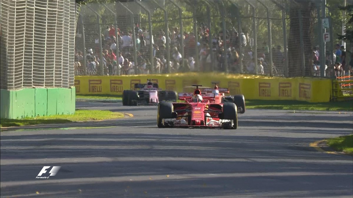 2-й круг. В лидирующей группе изменений нет: Хэмилтон - первый, Феттель - второй, Боттас - третий. Квят откатывается на 10-е место, а Алонсо проходит Хюлькенберга, и испанец уже 11-й.