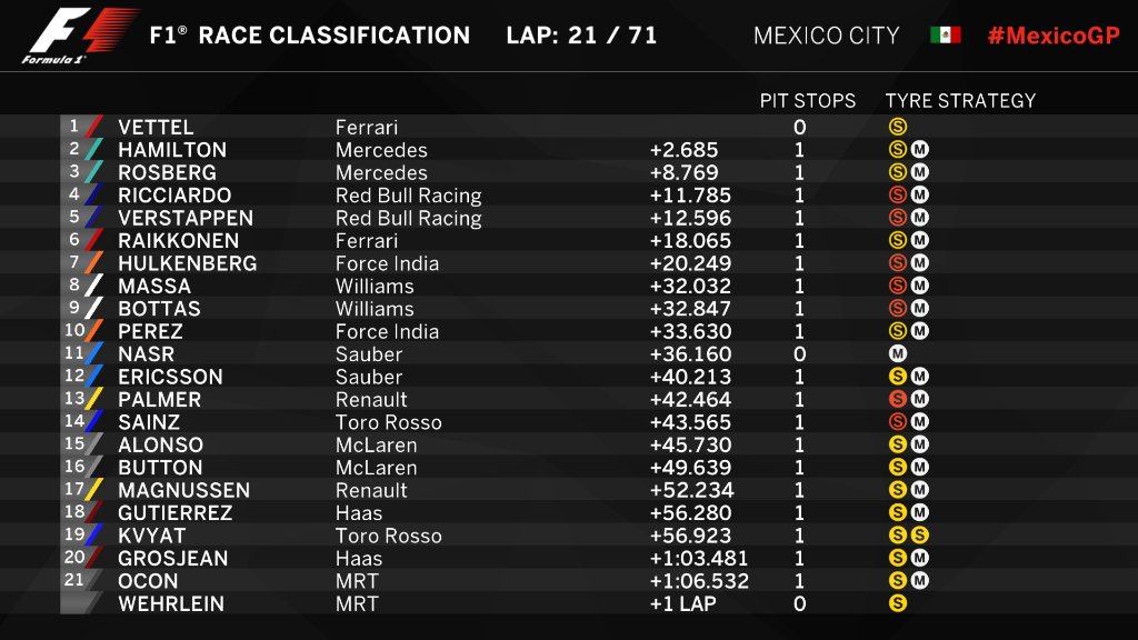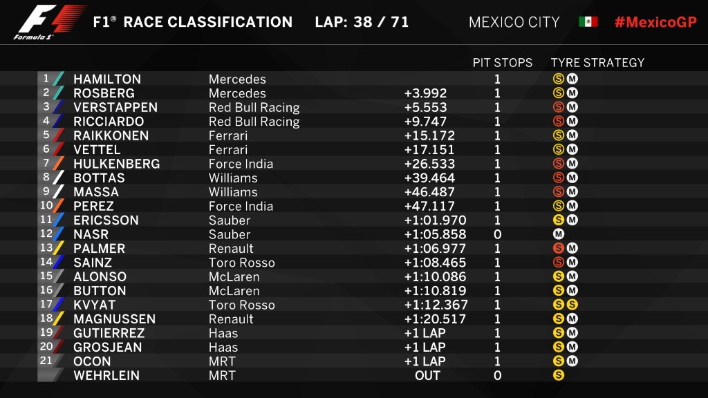 34-й круг. Топ-10: Хэмилтон, Росберг, Ферстаппен, Риккьярдо, Райкконен, Феттель, Хюлькенберг, Боттас, Масса, Перес.