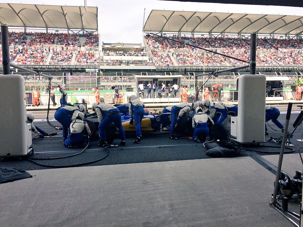 Феттель лидирует, но он еще не бывал в боксах. Наср тоже еще не менял шины.