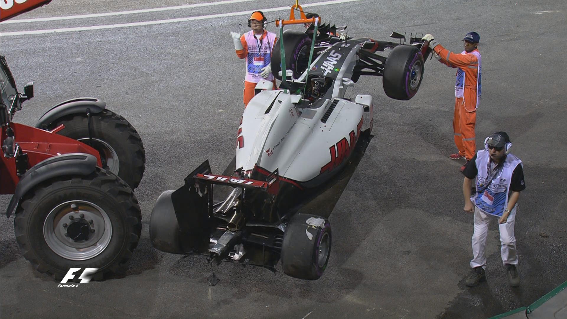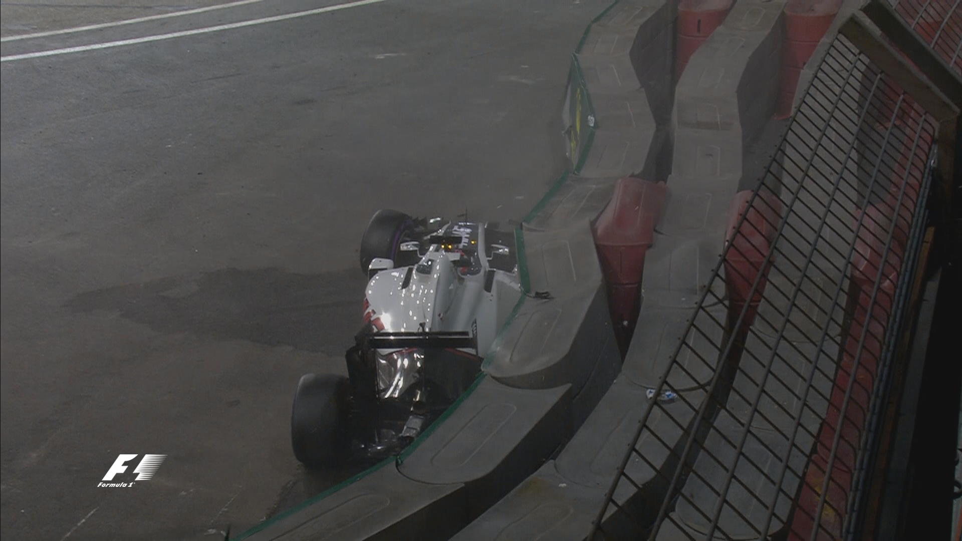Начало третьего сегмента отложено на 10 минут – с трассы убирают болид Грожана и чинят ограждение.