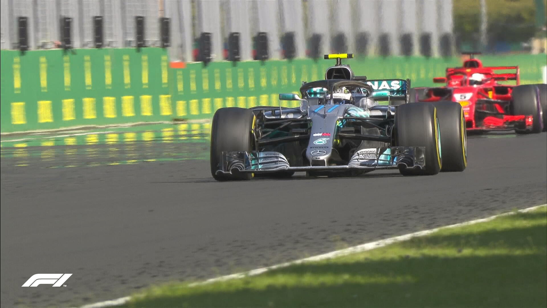 Боттас легко проходит Гасли и возвращает себе третью строчку, но стартовал он вторым. Впереди Феттель.
