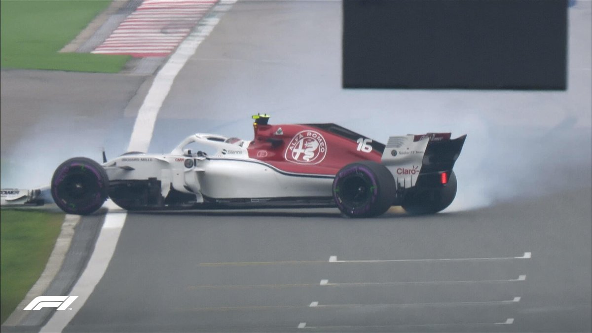 Леклер не справляется с управлением и теряет машину. Хорошо, что обошлось без столкновения - болид цел, квалификацию можно продолжать.