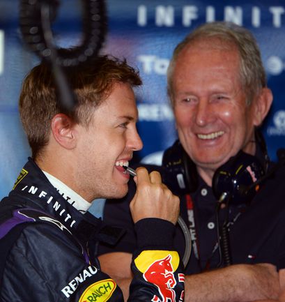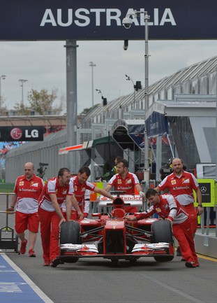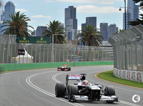 Формула-1. Мельбурн. Чемпионат мира. 1-й этап. "Гран-при Австралии". Вторые свободные заезды. 1. Феттель (Германия, "Ред Булл") - 1.25,908 (33 круга). 2. Уэббер (Австралия, "Ред Булл") - отставание 0,264 (31). 3. Росберг (Германия, "Мерседес") - 0,414 (26). 4. Райкконен (Финляндия, "Лотус") - 0,453 (37). Напомним, в первых свободных заездах лучшее время также показал Феттель. Фото AFP