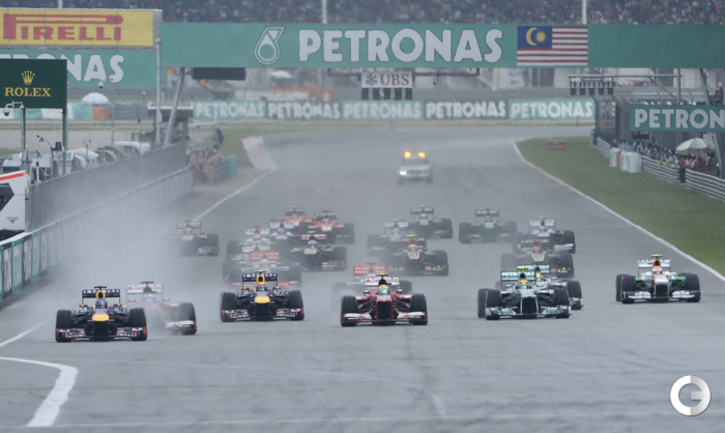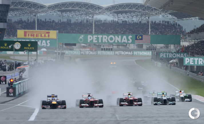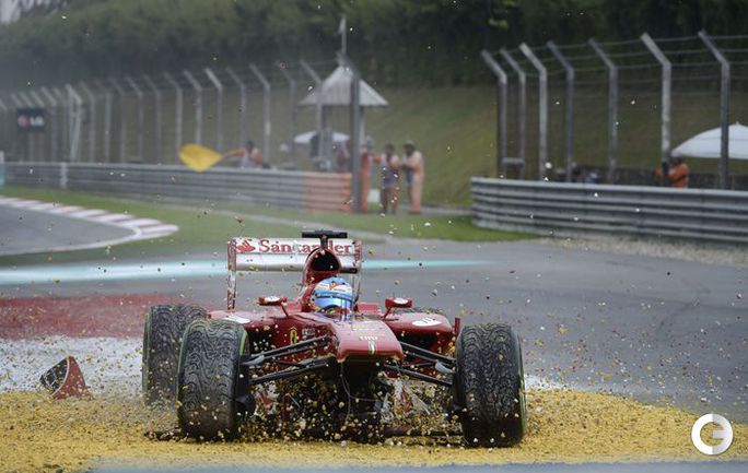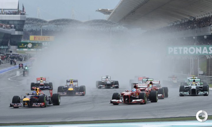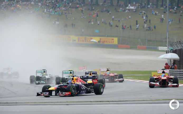 Куала-Лумпур (Малайзия). Чемпионат мира. 2-й этап. "Гран-при Малайзии". Действующий чемпион мира Себастьян Феттель выиграл второй этап чемпионата мира-2013. Вторым к финишу пришел его партнер по команде Марк Уэббер. Тройку замкнул пилот "Мерседеса" Льюис Хэмилтон. Фото AFP