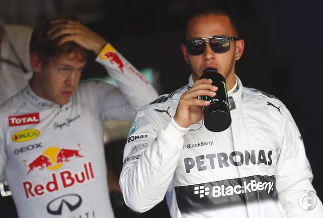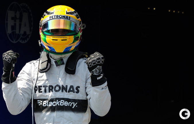 Нюрбург (Германия). Чемпионат мира. 9-й этап. "Гран-при Германии". Квалификация. 1. Хэмилтон (Великобритания, "Мерседес") – 1.29,398. 2. Феттель (Германия, "Ред Булл") – отставание 0,103. 3. Уэббер (Австралия, "Ред Булл") – 0,210. Фото AFP, REUTERS