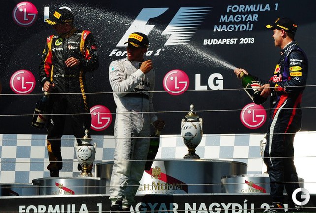 Будапешт (Венгрия). Формула-1. Чемпионат мира. 10-й этап. "Гран-при Венгрии". 1. Хэмилтон (Великобритания, "Мерседес") – 1:42.29,445. 2. Райкконен (Финляндия, "Лотус") – отставание 10,938. 3. Феттель (Германия, "Ред Булл") – 12,459. Пилот "Мерседеса" Льюис Хэмилтон стал победителем "Гран-при Венгрии". Для Хэмилтона – это 22-я победа в карьере – и первая за рулем "Мерседеса". Фото AFP, REUTERS