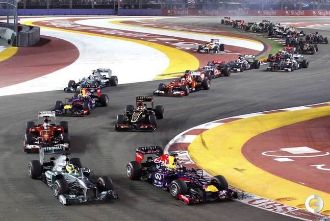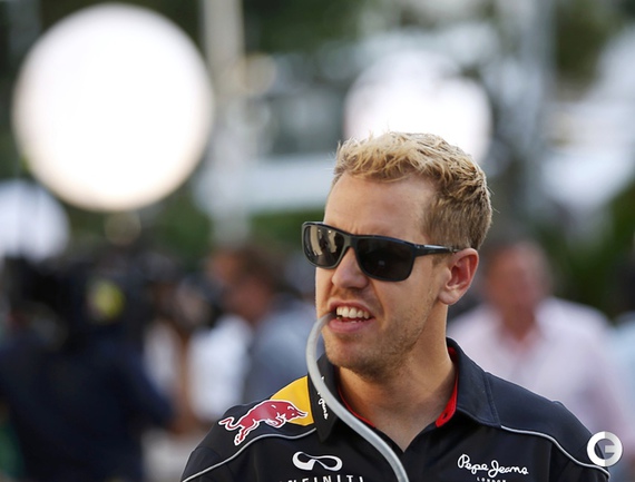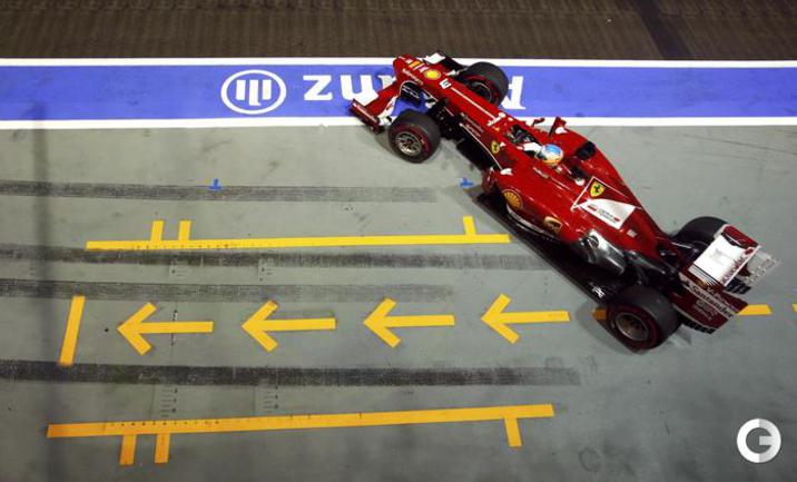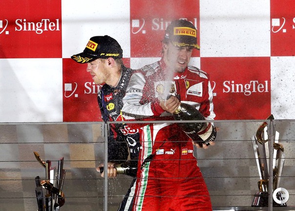 Сингапур (Сингапур). Чемпионат мира. 13-й этап. "Гран-при Сингапура". Немецкий пилот "Ред Булла" Себастьян Феттель выиграл "Гран-при Сингапура". Вторым стал испанец Фернандо Алонсо из "Феррари", третьим – его будущий партнер по итальянской конюшне финн Кими Райкконен из "Лотуса". Фото - REUTERS
