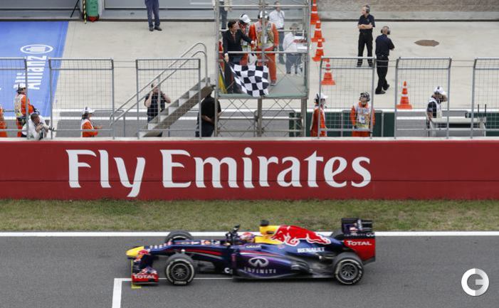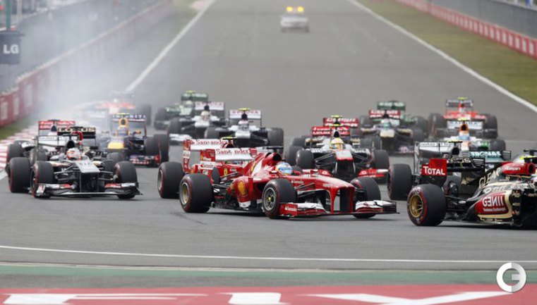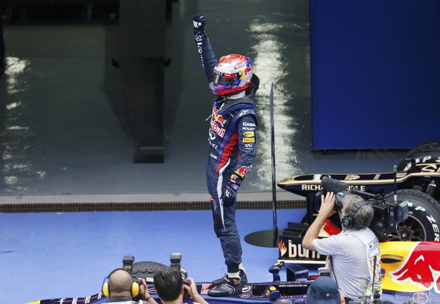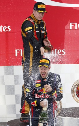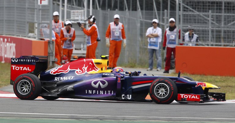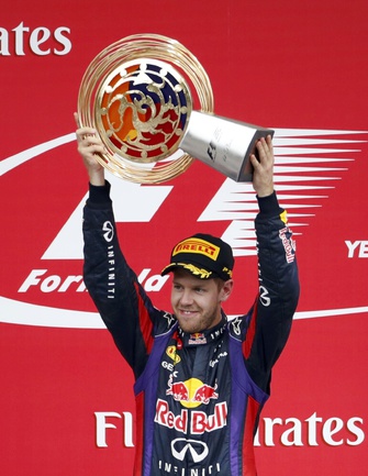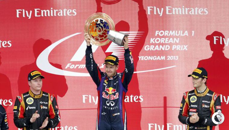 Йонам (Корея). Формула-1. Чемпионат мира. 13-й этап. "Гран-при Кореи". 1. Феттель (Германия, "Ред Булл") – 1:43.13,578. 2. Райкконен (Финляндия, "Лотус") – отставание 4,2. 3. Грожан (Франция, "Лотус") – 4,9. 4. Хюлькенберг (Германия, "Заубер") – 24,1. 5. Хэмилтон (Великобритания, "Мерседес") – 25,2. 6. Алонсо (Испания, "Феррари") – 26,1. 7. Росберг (Германия, "Мерседес") – 26,6. 8. Баттон (Великобритания, "Макларен") – 32,2. 9. Масса (Бразиллия, "Феррари") – 34,3. 10. Перес (Мексика, "Макларен") – 35,1. Немец Себастьян Феттель, благодаря победе в "Гран-при Кореи", упрочил лидерство в личном зачете. Вторым в гонке финишировал Кими Райкконен, третье место – у Ромена Грожана. Фото REUTERS