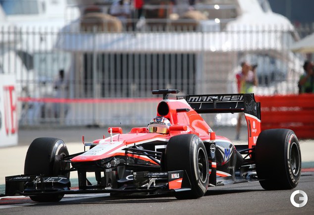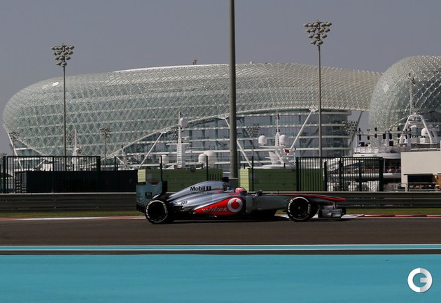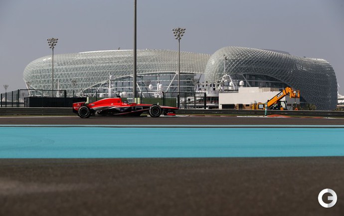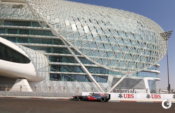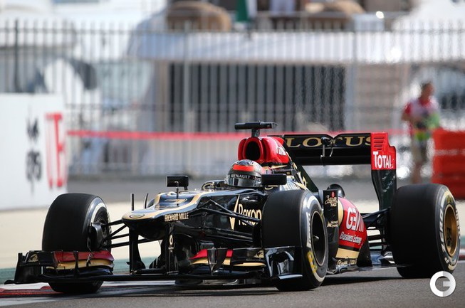 Формула-1. Абу-Даби. Чемпионат мира. 17-й этап. "Гран-при Абу-Даби". Первые свободные заезды. 1. Грожан (Франция, "Лотус") – 1.44,241 (21 круг). 2. Хэмилтон (Великобритания, "Мерседес) – отставание 0,192 (23). 3. Феттель (Германия, "Ред Булл") – 0,258 (18). 4. Уэббер (Австралия, "Ред Булл") – 0,471 (20). 5. Росберг (Германия, "Мерседес") – 0,500 (24)...21. Бьянки (Франция, "МАРУСЯ") – 3,482 (23). 22. Гонсалес (Венесуэла, "МАРУСЯ") – 5,324 (22). Состоялись первые свободные заезды "Гран-при Абу-Даби". Лучшее время показал пилот "Лотуса" Ромэн Грожан. Второй результат у Льюиса Хэмилтона из "Мерседеса", третье – у Себастьяна Феттеля из "Ред Булла". Фото AFP