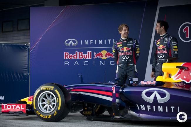 Перед началом первых тестов в Хересе, Red Bull Racing, выигравшая последние четыре титула как в личном, так и в командном зачётах, представила свою новую машину RB10 для гонщиков команды, четырёхкратного чемпиона мира серии Формула-1 Себастьяна Феттеля и Даниэля Риккардо. О технических характеристиках болида пока не сообщается, а официальная презентация состоится позднее. Фото REUTERS и AFP