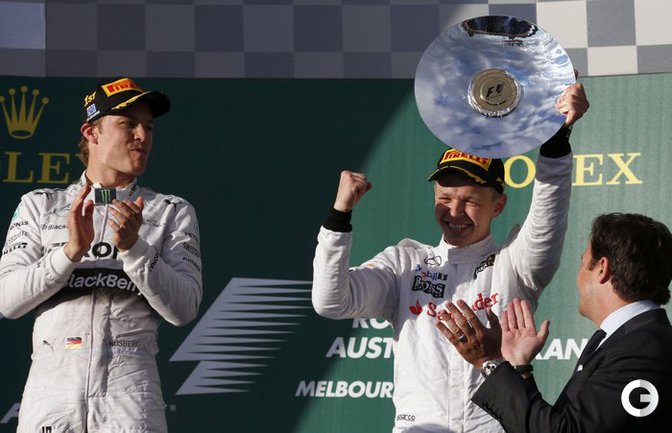 Мельбурн (Австралия). Чемпионат мира. 1-й этап. "Гран-при Австралии". Победу одержал пилот "Мерседеса" Нико Росберг. Второе место занял Даниэль Риккьярдо из "Ред Булла", третье – Кевин Магнуссен из "Макларена". Российский пилот "Торо Россо" Даниил Квят вошел в историю "Формулы-1". По итогам "Гран-при Австралии" он занял 10-е место и набрал одно очко. Таким образом, Квят стал самым молодым пилотом в истории "Больших призов", попадавшим в очковую зону – на момент гонки ему было 19 лет и 10 месяцев. Прежнее достижение было установлено Себастьяном Феттелем – 19 лет и 11 месяцев. Фото AFP и REUTERS