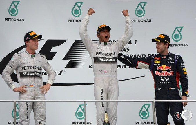 Куала-Лумпур (Малайзия). Чемпионат мира. 2-й этап. "Гран-при Малайзии"Пилот "Мерседеса" Льюис Хэмилтон стал победителем "Гран-при Малайзии". Вторым финишировал партнер британца по команде Нико Росберг. Третьим гонку завершил Себастьян Феттель из "Ред-Булла". Российский гонщик из "Торо Россо" Даниил Квят стал 10-м. Фото AFP