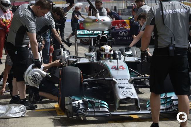 Пилот "Мерседеса" Льюис Хэмилтон выиграл квалификацию "Гран-при Испании". Вторым стал его партнер по немецкой конюшне Нико Росберг, третьим – Даниэль Риккьярдо из "Ред Булла". Россиянин Даниил Квят из "Торо Россо" стал 13-м. Фото AFP, REUTERS