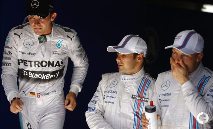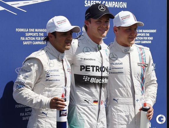 Хоккенхайм. Формула-1. Чемпионат мира. "Гран-при Германии". Квалификация. 1. Росберг (Германия, "Мерседес") – 1.16,540. 2. Ботта (Финляндия, "Уильямс") – отставание 0,219. 3. Масса (Бразилия, "Уильямс") – 0,538. 8. КВЯТ (Россия, "Торо Россо") – 2,425. Фото AFP, REUTERS