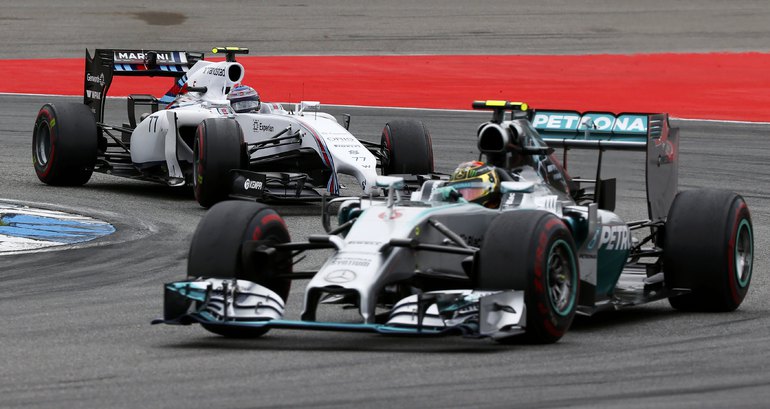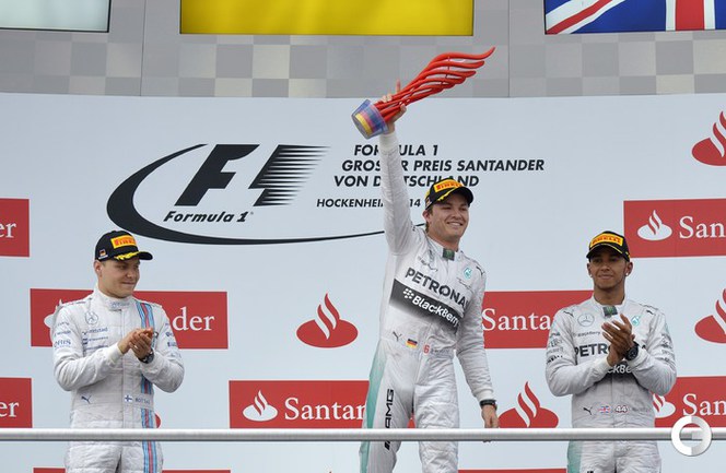 Немецкий пилот "Мерседеса" Нико Росберг впервые победил на "Гран-при Германии". На втором месте финишировал финн Валттери Боттас из "Уильямса", на третьем – британец Льюис Хэмилтон из "Мерседеса". Фото REUTERS