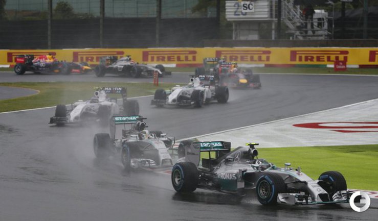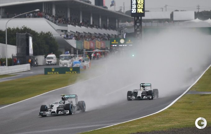 05.10.2014. Гонка "Гран-при Японии" остановлена досрочно на 47-м круге. В момент остановки гонки лидером был Льюис Хэмилтон из "Мерседеса", вторым – его партнер Нико Росберг. А третье и четвертое места заняли Себастьян Феттель и Даниэль Риккьярдо соответственно. Россиянин Даниил Квят стал 11-м. Фото AFP, REUTERS