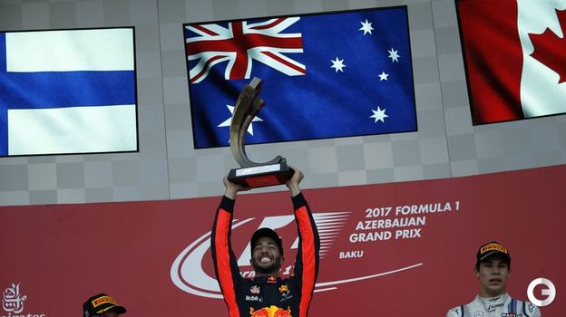 Первый в истории "Гран-при Азербайджана" превратился в шоу и оставил лидеров без подиума. Победа Дэна Риккьярдо, подиум Лэнса Стролла, невероятное возвращение Вальттери Боттаса, тесный контакт между Льюисом Хэмилтоном и Себастьяном Феттелем, очковый финиш Фернандо Алонсо и сход Даниила Квята – таким огненным стал первый в истории "Гран-при Азербайджана". Первый, потому что в прошлом году в Баку состоялся "Гран-при Европы".