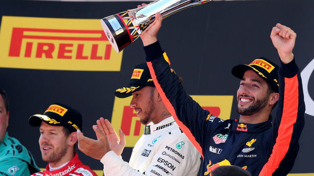 Пилот "Мерседеса" Льюис Хэмилтон выиграл "Гран-при Испании". Вторым стал Себастьян Феттель на "Феррари", тройку лидеров замкнул Даниэль Риккьярдо на "Ред Булле".