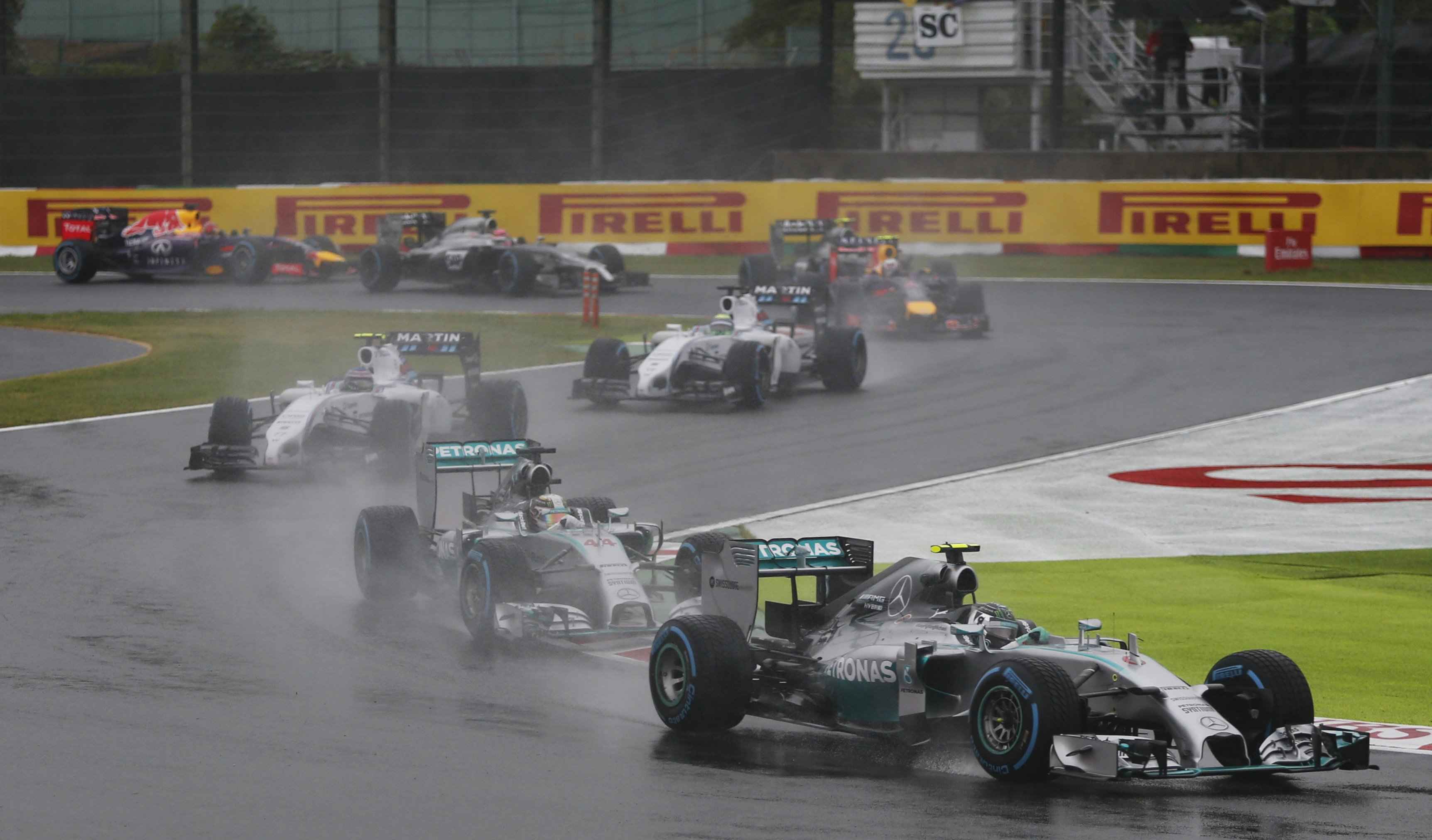 Сузука (Япония). Чемпионат мира. 16-й этап. "Гран-при Японии". 1. Хэмилтон (Великобритания, "Мерседес") – 1:51.43,021. 2. Росберг (Германия, "Мерседес") – отставание 9,180. 3. Феттель (Германия, "Ред Булл") – 29,122. 4. Риккьярдо (Австралия, "Ред Булл") – 38,818. 5. Баттон (Великобритания, "Макларен") – 1.07,550. 6. Боттас (Финляндия, "Уильямс") – 1.53,773. 7. Масса (Бразилия, "Уильямс") – 1.55,126. 8. Хюлькенберг (Германия, "Форс Индия") – 1.55,948. 9. Вернь (Франция, "Торо Россо") – 2.07,638. 10. Перес (Мексика, "Форс Индия") – 1 круг. 11. КВЯТ (Россия, "Торо Россо") – 1 круг. 12. Райкконен (Финляндия, "Феррари") – 1 круг. 13. Гутьеррес (Мексика, "Заубер") – 1 круг. 14. Магнуссен (Дания, "Макларен") – 1 круг. 15. Грожан (Франция, "Лотус") – 1 круг. 16. Мальдонадо ("Лотус") – 1 круг. 17. Эрикссон (Швеция, "Катерхэм") – 1 круг. 18. Чилтон (Великобритания, "Маруся") – 1 круг. 19. Кобаяси (Япония, "Катерхэм") – 1 круг.