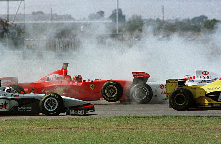 Журналисты сразу вспомнили и инцидент, произошедший за три года до этого, когда обстоятельства были практически идентичны. В последней гонке сезона-1994 немец на поврежденной машине столкнулся с другим претендентом на звание чемпиона мира Дэймоном Хиллом. Оба сошли с трассы, однако судьи, в отличие от британских журналистов, не увидели в том эпизоде ничего криминального, и Шумахер завоевал чемпионское звание. На "Гран-при Бельгии"-1998 немец после столкновения с Дэвидом Култхардом хотел подраться с ним в боксах, однако машину шотландца успели починить и отправить на трассу, так что до рукоприкладства дело не дошло. Вообще же число гоночных моментов, за которые немец подвергался критике других пилотов, болельщиков, паддока и журналистов, очень велико даже с учетом длительности его карьеры.