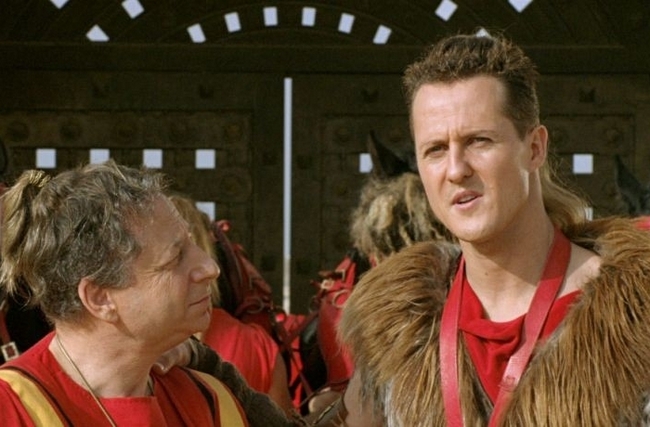 Кадр из фильма "Астерикс и Обеликс на Олимпийских играх". Жан ТОДД и Михаэль ШУМАХЕР.