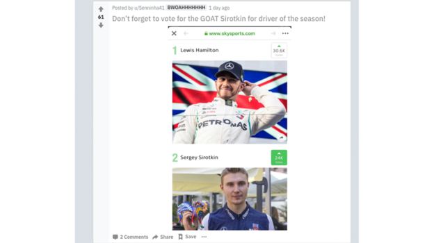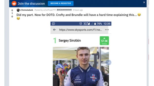 .@SkySportsF1 driver of the year's vote has become a joke. Sirotkin was 19th two days ago, now he's 3rd. Stop interfering with everything, Russia. #Formula1 https://t.co/nrJyOoj74t pic.twitter.com/arXjzNftZI