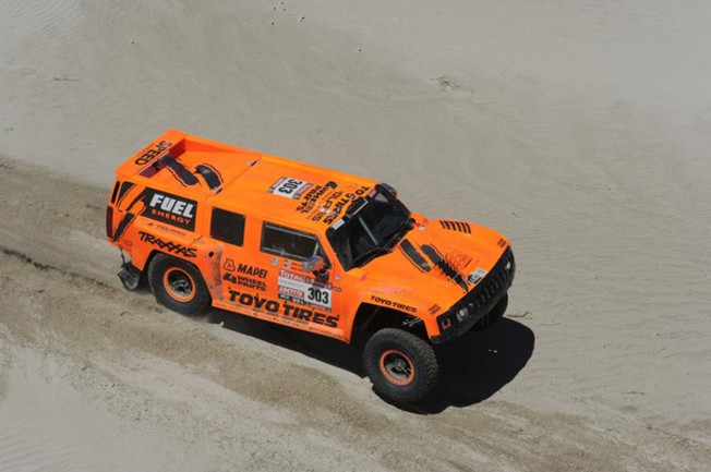 Робби Гордон на "Хаммере" впервые за нынешний "Дакар" опередил всех своих соперников по итогам дня. Американец более чем на полторы минуты опередил занявшего второе место Стефана Петеранселя на "Мини". Впрочем, француз продолжает лидировать в общем зачете гонки, имея преимущество в шесть минут. Прикрывающие своего лидера товарищи Петеранселя по команде - испанец Хуан Рома и поляк Кшиштоф Холофчик - финишировали на привычных для себя третьем и четвертом местах соответственно.