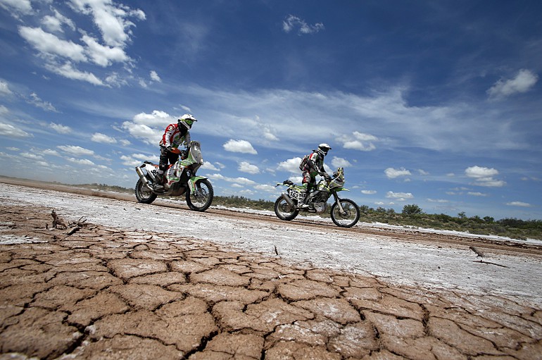 В понедельник участникам "Дакара" предстоял один из самых длинных на этой многодневке спецучастков – из Вилья-Карлос-Пас в Сан-Хуан, расположенный в предгорьях Анд. Дополнительную сложность добавляла жаркая погода – на солнце было далеко за 40 градусов. Настоящая душегубка! Кроме того, на трассе для всех гоночных классов за исключением грузовиков были представлены четыре различных вида покрытия, причем в конце – песчаный участок длиной порядка 50 километров.