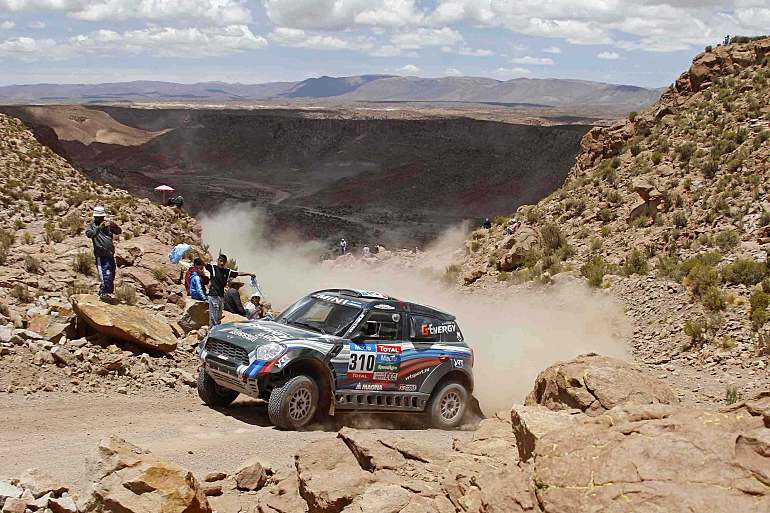 Автомобили. Калама – Сальта. 358 км. 1. Аль-Аттийя/Баумель (Катар/Франция, "Мини") – 3:49.59. 2. Терранова/Грау (Аргентина, "Мини") – 1.35. 3. Аль-Раджи/Готтшалк (Саудовская Аравия/Германия, "Тойота") – 3.39… 12. ВАСИЛЬЕВ/ЖИЛЬЦОВ ("Мини") – 9.29… 20. Рахимбаев (Казахстан)/НИКОЛАЕВ ("Мини") – 17.53… 24. Иссабаев (Казахстан)/ДЕМЬЯНЕНКО ("Тойота") – 21.10… 26. ФИРСОВ/ФИЛАТОВ ("Тойота") – 22.34… 52. ТЕРЕНТЬЕВ/БЕРКУТ ("Форд") – 1:17.20. Общий зачет. 1. Аль-Аттийя/Баумель – 35:19.37. 2. Де Вильерс/фон Зитцевитц (ЮАР/Германия, "Тойота") – 28.22. 3. Аль-Раджи/Готтшалк – 43.08… 8. ВАСИЛЬЕВ/ЖИЛЬЦОВ – 3:12.10… 10. Рахимбаев/НИКОЛАЕВ – 3:59.17… 17. Иссабаев/ДЕМЬЯНЕНКО – 6:06.27… 53. ФИРСОВ/ФИЛАТОВ – 34:19.02… 64. ТЕРЕНТЬЕВ/БЕРКУТ – 69:55.29.