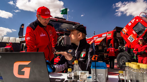 «Газпромнефть — смазочные материалы» предоставляли гонщикам и техническую поддержку: мобильную лабораторию, которая сопровождала машины на всем протяжении ралли-рейда. Технические специалисты отбирали пробы после каждого этапа и уже через 15 минут выдавали механикам информацию, которая помогает определить состояние различных узлов и агрегатов автомобиля. После пятого этапа в пробах у одной из машин лаборатория выявила повышенную концентрацию сажи, что косвенно свидетельствует о сбое в работе топливной аппаратуры. Специалисты дали механикам рекомендации по регулировке топливной системы, и это позволило предотвратить более серьезные неполадки в дальнейшем.