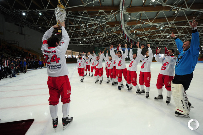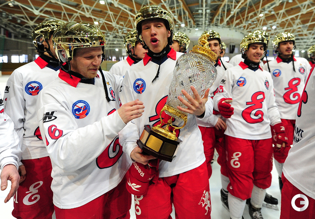 Чемпионат России. Суперлига. Финал. "Динамо" (Москва) – "Енисей" (Красноярск) – 5:6 ОТ (3:2, 2:3, 0:1). "Енисей" во второй раз в истории стал чемпионом России. Красноярцы уступали по ходу встречи со счетом 2:5, но смогли сравнять счет, а затем Олег Толстихин забил золотой гол. Фото - Антон Сергиенко, "СЭ"
