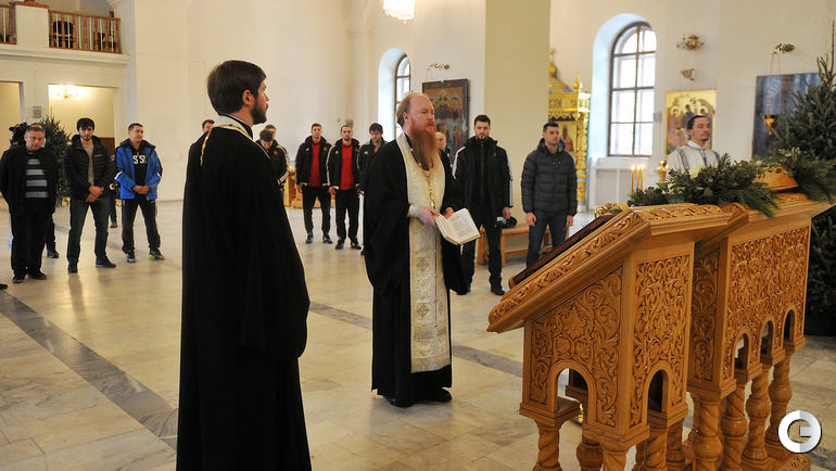 Перед чемпионатом мира по хоккею с мячом, который стартует 29 января в Швеции, игроки и тренеры сборной России посетили храм святителя Николая Мирликийского на трех горах в Москве. Президент Федерации хоккея с мячом, президент Международной федерации бенди Борис СКРЫННИК принес в дар команде икону святого благоверного князя Александра Невского.