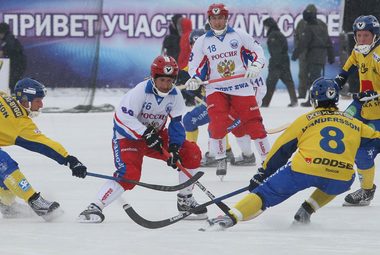 Оказавшись в большинстве, шведы предприняли последний и решительный штурм, во время которого несколько раз были близки к успеху, однако оставшиеся на льду семеро полевых игроков и вратарь россиян бились как львы! Тигром метался по вратарской Гейзель, дважды выносил мяч с ленточки вездесущий Свешников, ну а отчаянный бросок Булатова под мяч, посланный шведами после розыгрыша углового, был встречен трибунами овацией. Финальный свисток же и вовсе утонул в невообразимом реве. Россия - в финале! И завтра сыграет с финнами.
