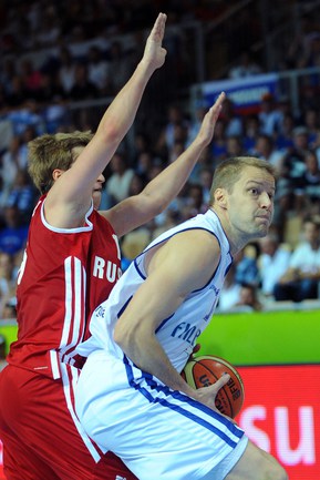 Копер. Баскетбол. Чемпионат Европы. Мужчины. 1-й групповой турнир. Группа D. 4-й тур. Финляндия – РОССИЯ – 86:83 2 ОТ (16:18, 15:12, 10:16, 26:21, 8:8, 11:8). Сборная России проиграла четвертый матч чемпионата Европы в Словении. Таким образом, сборная России утратила шансы на выход в плей-офф. Фото AFP