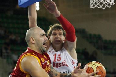 Однако действующие чемпионы Европы уже доказали в Польше, что способны преподносить сюрпризы как со знаком "плюс", так и "минус". А македонцы, если разобраться, не так уж и слабы. Чего стоит опытнейший разыгрывающий Врбица Стефанов, в свое время доставивший немало проблем ЦСКА в Евролиге, выступая за "Сиену". Или центровой краснодарского "Локомотива" Антич. Именно эти двое принесли своей сборной первые очки, позволив ей за 5.32 до первого перерыва выйти вперед – 5:4. Конечно, всего два попадания с игры за полпериода – результат для сборной России, мягко говоря, не идеальный. С другой стороны, радовала игра в защите, да и в борьбе под щитом (особенно под чужим) у наших наконец-то было весомое преимущество над соперником. Правда, большое количество подборов в нападении обусловлено многочисленными промахами. То и дело мазал из своего "любимого" левого угла площадки Маккарти, не улыбалась удача на трехочковой дуге и Моне… А Мозгов на 6-й минуте умудрился не забить из-под кольца дважды подряд, оба раза выиграл борьбу за отскок и с третьей попытки все же попал в кольцо, причем с фолом! Получилось даже лучше, чем если бы Мозгов забил сразу, - "2+1" и 8:5 в пользу россиян.
