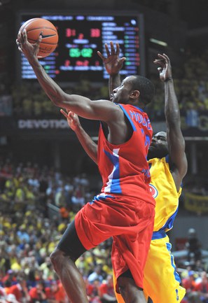 После отдыха дважды из-за дуги выстрелил Холден. Автор золотого броска сборной России в финале чемпионата Европы в том же самом Palacio De Deportes Comunidad De Madrid старался сделать все, чтобы испанская столица стала местом триумфа и для клуба. И после "дуплета" "десятки" армейцы вцепились в свое преимущество. Андерсен не потерял мяч в противостоянии с Вуйовичем и забил со средней дистанции, а в следующей атаке попал с периметра - 47:56. Добавил очки в армейскую копилку второй центровой дружины Мессины ван ден Шпигель. "Маккаби" же чаще забивал не с игры, а с линии штрафных. А то, что этот вечер должен был стать вечером ЦСКА, все убедились за пару минут до последнего перерыва. Гарсия перехватил мяч, но после рывка не попал в кольцо. Немного испортил настроение перед четвертой четвертью Бинум, попавший с периметра - 57:63. |