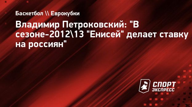 Владимир Петроковский: "В сезоне-2012/13 "Енисей" делает ставку на россиян"
