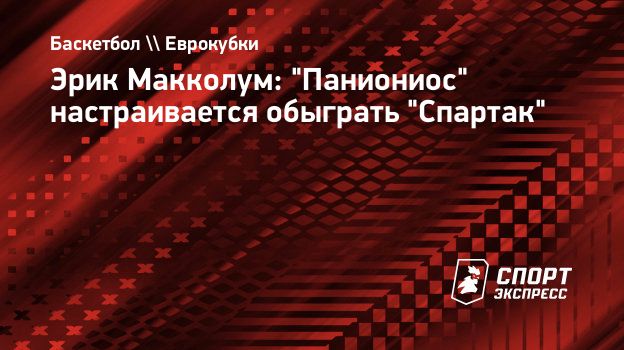 Эрик Макколум: "Паниониос" настраивается обыграть "Спартак"