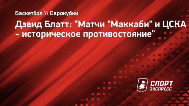 Дэвид Блатт: "Матчи "Маккаби" и ЦСКА - историческое противостояние"