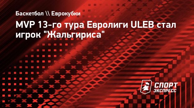 MVP 13-го тура Евролиги ULEB стал игрок "Жальгириса"