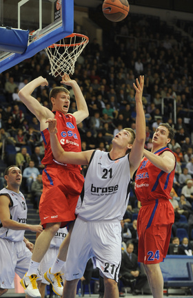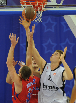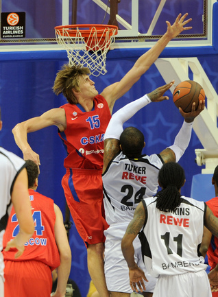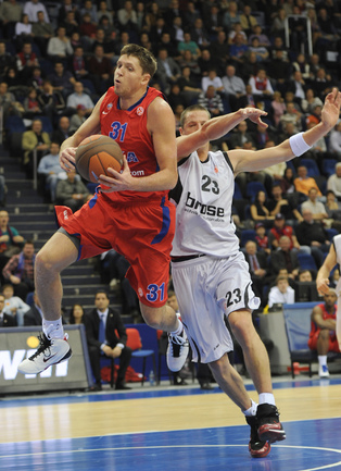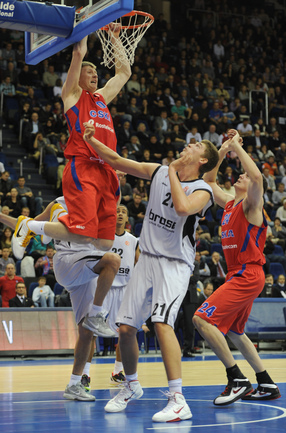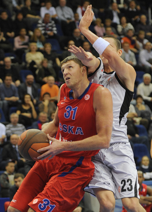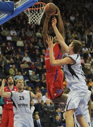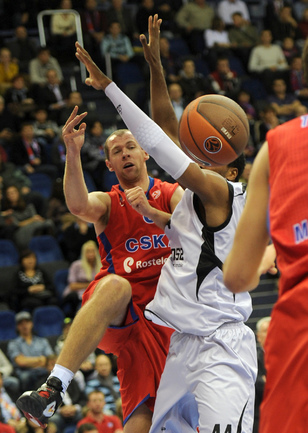 Баскетбол. Евролига. Мужчины. 1-й групповой турнир. 2-й тур. Группа В. ЦСКА (Россия) - "Бамберг" (Германия) - 94:74 (24:14, 23:16, 24:22, 23:21). Ц: Крстич (19), Воронцевич (13), Кириленко (12). Б: Плайсс (17), Дженкинс (15). Фото - Татьяны Дорогутиной, "СЭ"