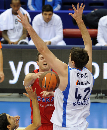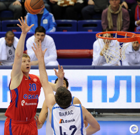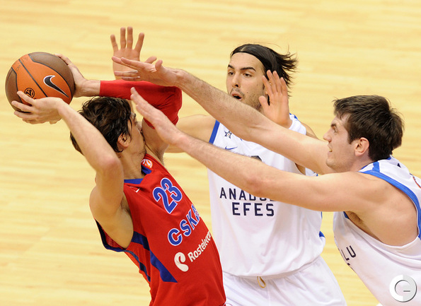 Евролигa. 2-й групповой турнир. Группа E. 2-й тур. ЦСКА - ЭФЕС ПИЛСЕН - 96:68 (23:21, 25:15, 26:17, 22:15). Ц: Кириленко (15+8 подборов), Крстич (14), Теодосич (13), Хряпа (11+8 передач), Швед (11). Э: Вуйячич (21), Барач (15). Фото - Никита УСПЕНСКИЙ, "СЭ"