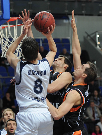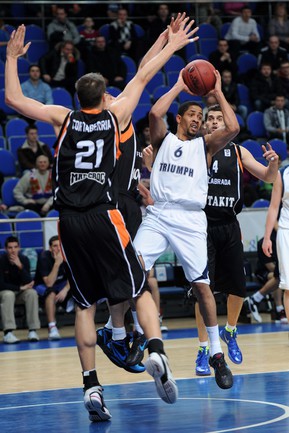 Баскетбол. Кубок вызова. Мужчины. Четвертьфинал. Второй матч. "Триумф" (Россия) - "Фуэнлабрада" (Испания) - 68:78 (18:18, 18:20, 19:13, 13:27). Решающий поединок за выход в "Финал четырех" состоится в Испании 20 марта. Фото - Федор УСПЕНСКИЙ, "СЭ"