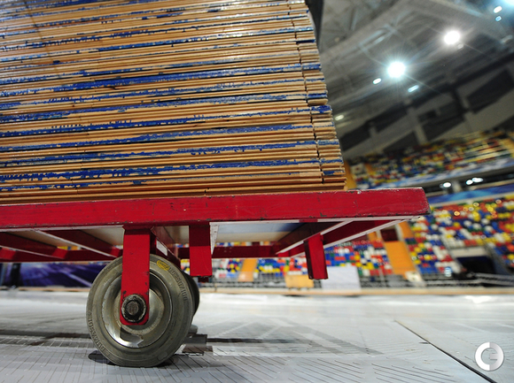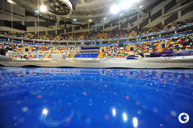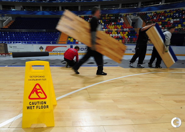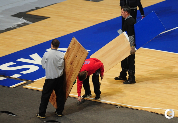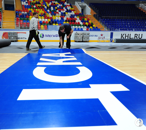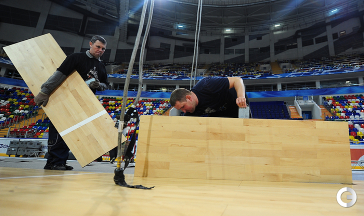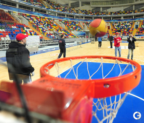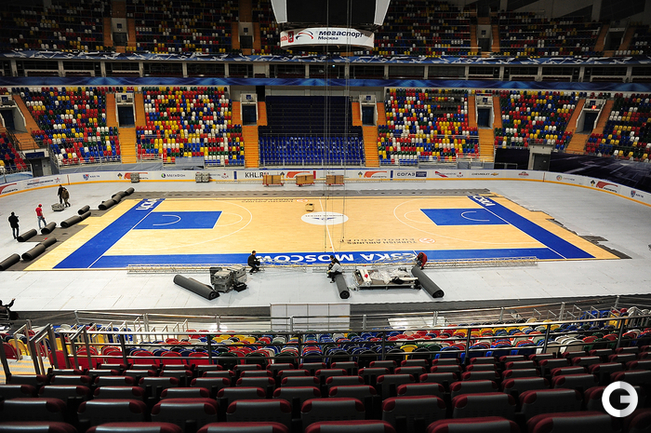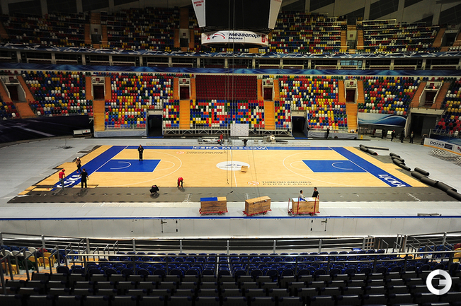 10.09.2012 года. Москва. ДС "Мегаспорт". Вместо привычного льда арену покрыли баскетбольным паркетом. Фото- Антона СЕРГИЕНКО, "СЭ ИНТЕРНЕТ"