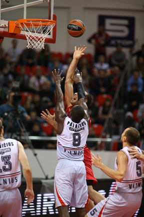 Баскетбол. Евролига. Мужчины. 1-й групповой турнир. Группа D. 1-й тур. "Локомотив" (Россия) – "Летувос-Ритас" (Литва) – 68:53 (19:10, 20:17, 16:14, 13:12). Эта победа стала второй подряд для российского клуба. Ранее железнодорожники победили "Црвену Звезду". Фото - Виталий Тимкив