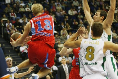 Представители России и Словении в баскетбольной Евролиге провели в Москве своеобразную репетицию субботней дуэли футбольных сборных двух стран в отборочном турнире ЧМ-2010. ЦСКА на своей площадке обыграл "Олимпию" из Любляны.