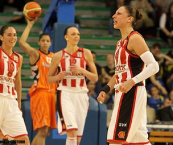 Раньше других к особенностям зала приспособилась, естественно, Таурази. Лучшая баскетболистка предыдущего "Финала четырех" реализовала первые же два своих "джордановских" средних броска. Подопечные Гундарса Ветры, чуть пробуксовав на старте, постепенно тоже приспособились к зонной защите красно-белых и ответили рывком - 8:0. Пришлось уже подмосковной команде искать контраргументы.