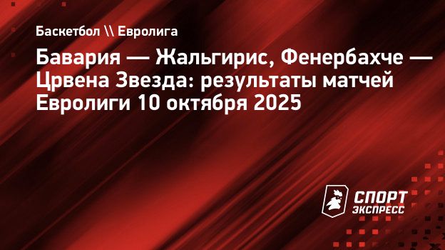 «Жальгирис» лидирует в турнирной таблице Евролиги (3 победы в 3 матчах), «Фенербахче» занимает 11-е место (1 победа, 2 поражения), «Црвена Звезда» — 16-е (1-2), а «Бавария» — 18-е (1-2).