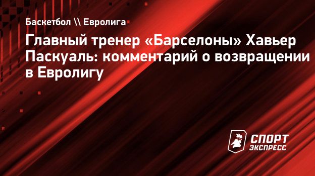 Главный тренер «Барселоны» Хавьер Паскуаль поделился эмоциями от возвращения в Евролигу.