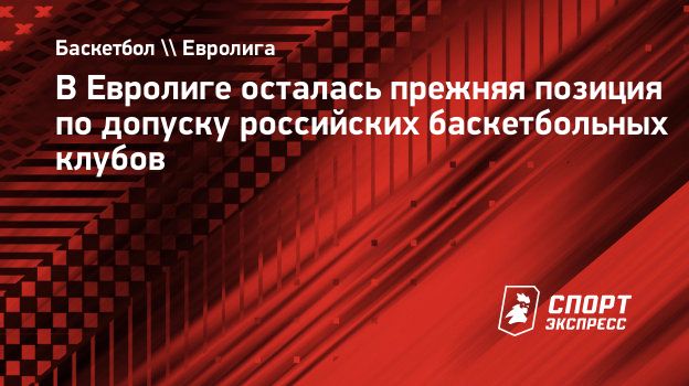 Позиция баскетбольной Евролиги по допуску российских клубов не поменялась.